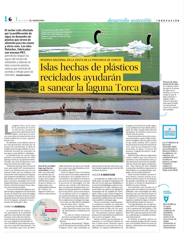 08/06/2020 in PRENSA Islas hechas de plásticos reciclados ayudarán a sanear la Laguna Torca El Mercurio 04-07-2020 Share Anterior Sistema de islas artificiales flotantes permitirá mitigar la contaminación de la laguna Torca en la Región del Maule siguiente Vichuquén: Sequía permitió hallazgo arqueológico de canoa mapuche en Laguna Torca